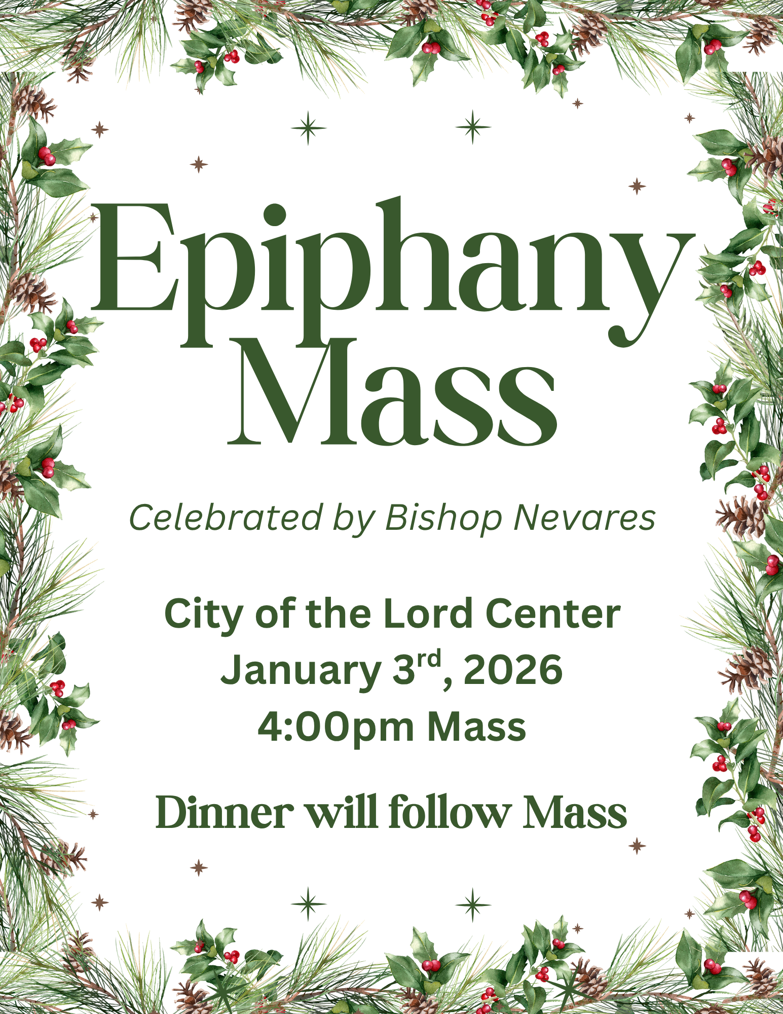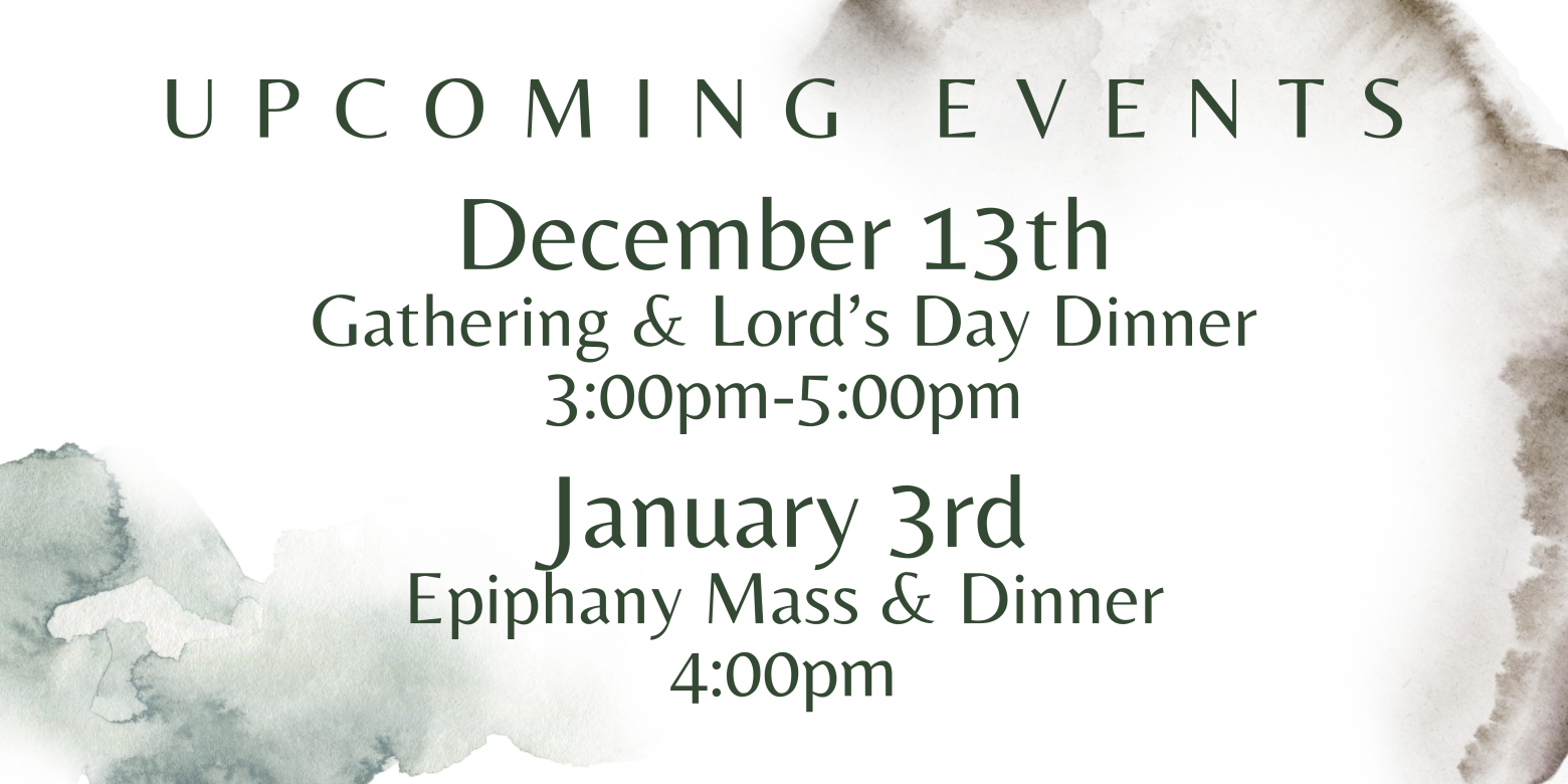 Please mark your calendars. We will be having a meeting on January 6th, 2026 from 7:00pm-8:30pm. We will be starting in the Cenacle with prayer and praise followed by a meeting to touch base on the status of all men's and women's groups. We also hope to move forward together with some central themes for small groups for 2026.